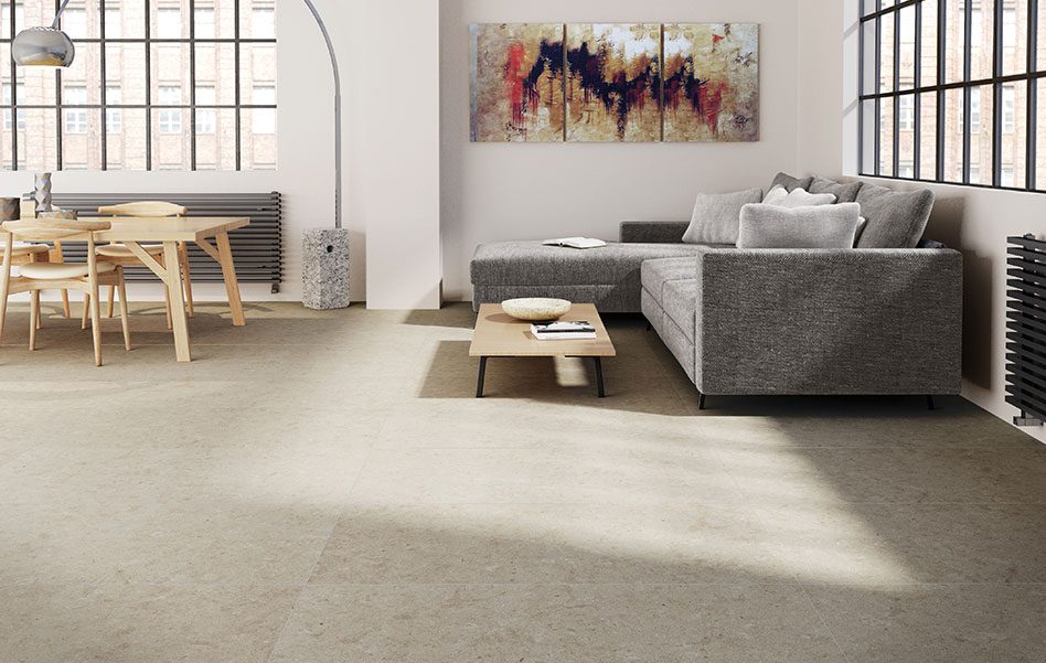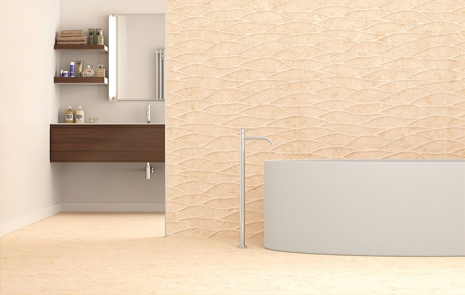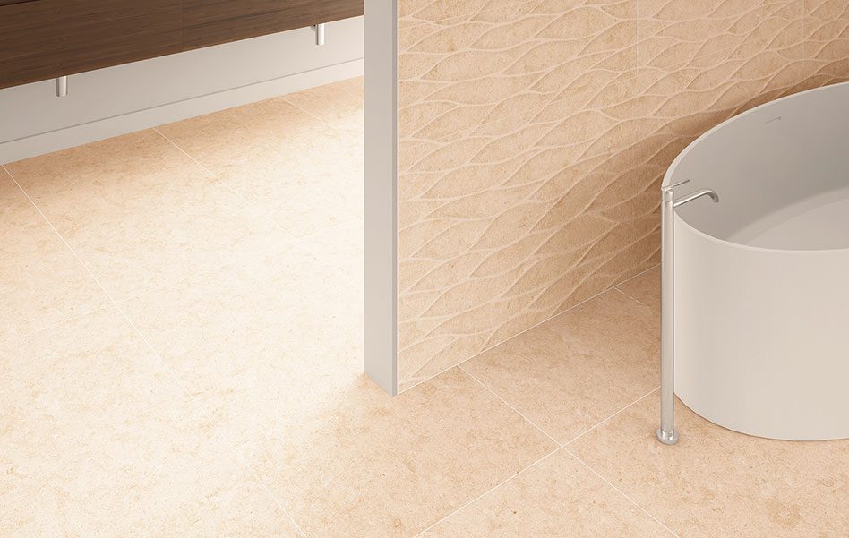 Cenia is inspired by a chalky marmoreal stone found in Spain. This collection presents a nice and relaxed monochromatic aesthetic with a mixture of discrete background veins and subtle inlaid fossils of shells. Its texture has a fine and smooth surface rugosity, which mimics the particular treatment of carved brushed finish, characterized by a soft and satiny feel.Cenia surface reminds of the process of carving with a chisel the surface of the stone that afterwards is brushed with a wire brush to achieve the soft finish that makes it appropriate for both interior and exterior tilings.To complete the collection there is the Flamed finishing, that stands out for the nature of its structured surface ideal for facades. The four lighter colours despite of the Antracite are presented also in 30×90 cm for wall with its decorations Bands and Dunes and 30×30 cm non rectified for floors