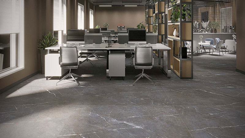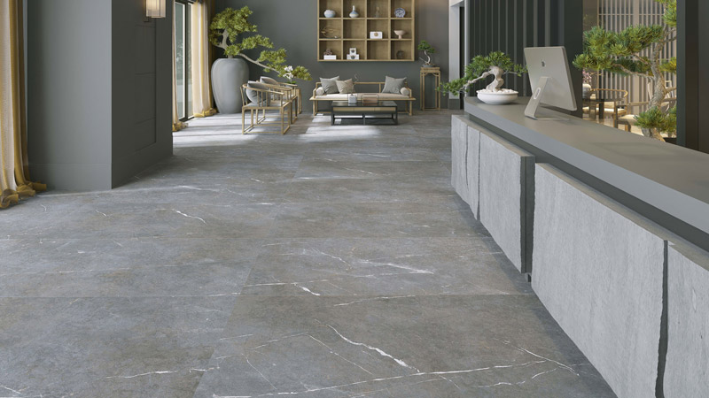 سرامیک پرسلان کرگرس مدل سرنا Cerna در سایز 160*80 و 95*95 با طرح لاشاتور و رنگ طوسی تیره همراه با رگه های سفید و سطح مات طراحی و تولید شده است.