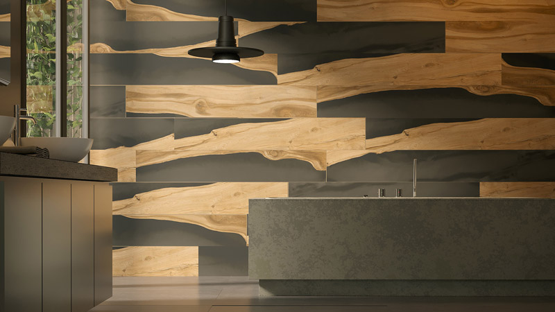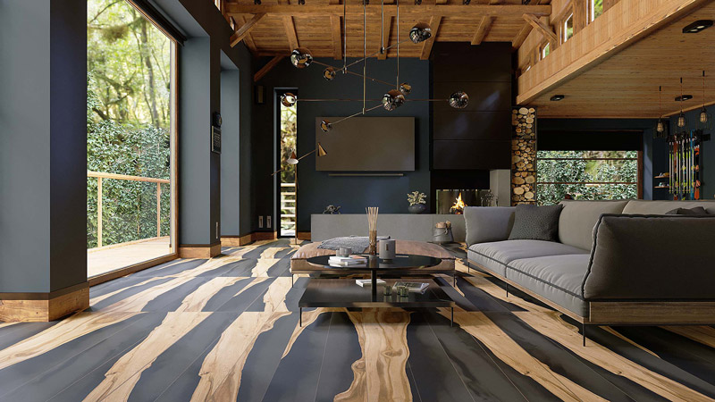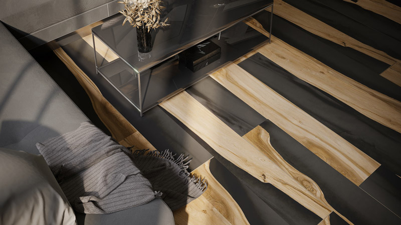 سرامیک پرسلان کرگرس سری خامر Khumer در سایز 120*20 با طرح پارکت و سطح مات در ترکیب رنگی سفید - چوب و مشکی - چوب طراحی و تولید شده است.