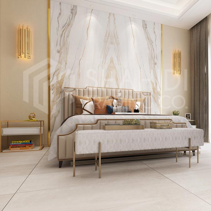 اسلب سرامیک لیکویید ماربل Liquid Marble مانند یک اثر هنری، حس آرامش و زیبایی طبیعت را القا میکند. پس زمینه سفید رنگ با رگههای طوسی (خاکستری) و طلایی ترکیب شده است که این ترکیب در سطح اسلب مدام در حال تغییر و نوسان هستند که سبب میشود حس خلاقیت و منحصر فرد بودن به طراحی دکوراسیون داخلی افزوده شود.