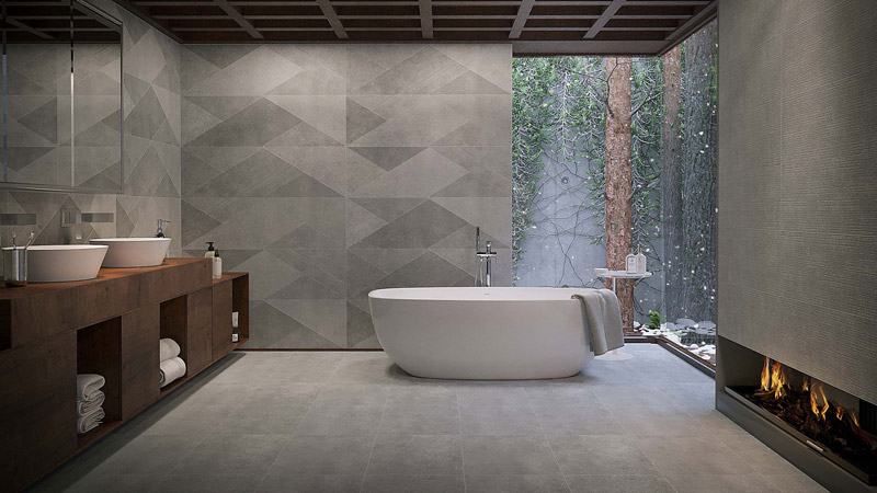 کاشی تبریز ریگارد Rigard در سایز 120*40 و 40*40 با سطح مات و طرج بتن و رنگ طوسی همراه با سطح قالب دار و دکور طراحی و تولید شده است.